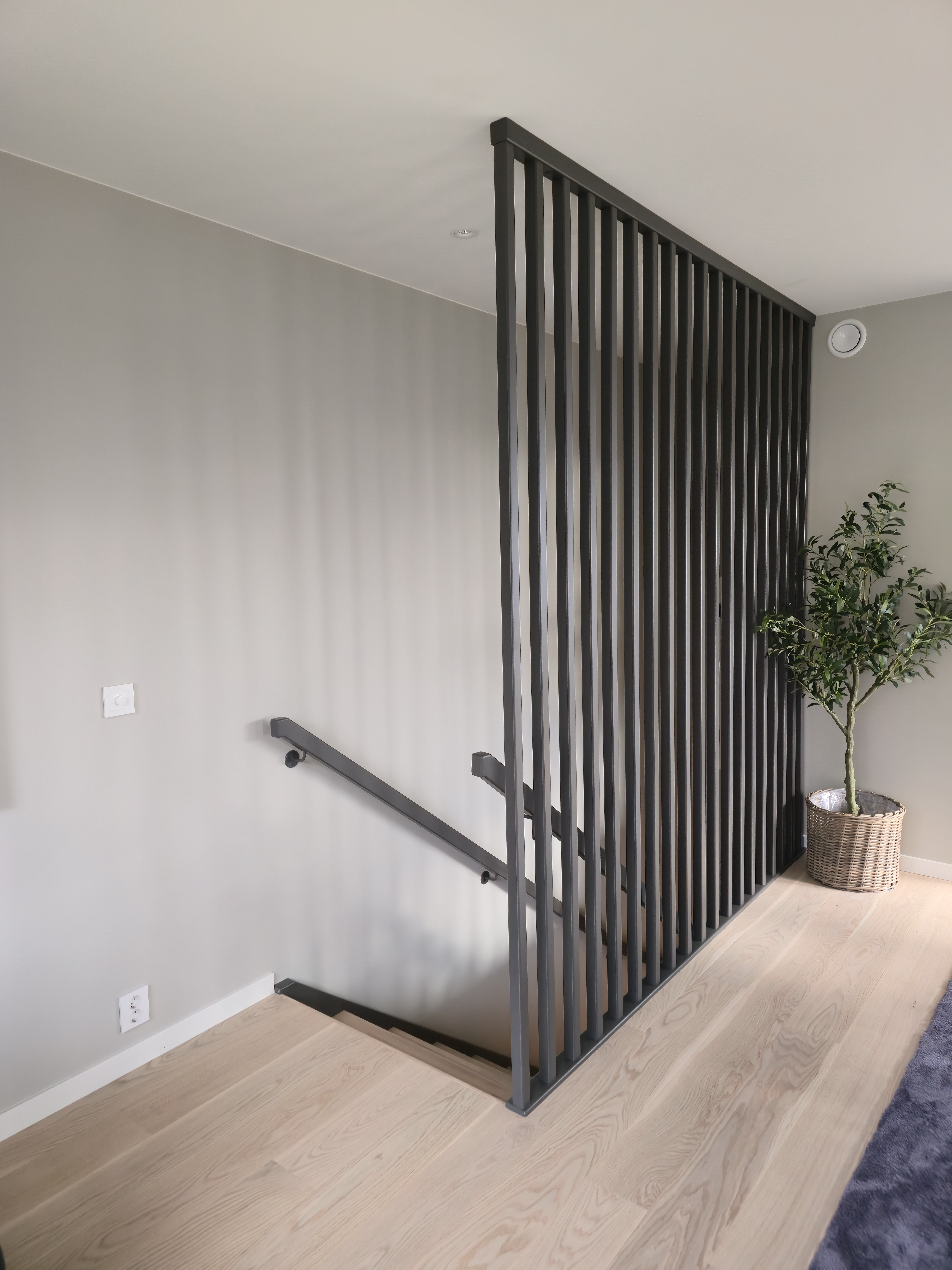 Ограждение: поручень, реечная стена, окрашенная в чёрный цвет